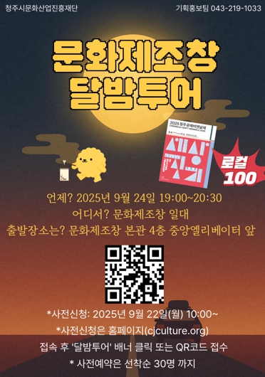 [뉴스노크=김인호 기자] 청주시문화산업진흥재단이 22일 오전 10시부터 ‘문화제조창 달밤투어’ 9월의 두 번째 투어객 모집에 들어간다.