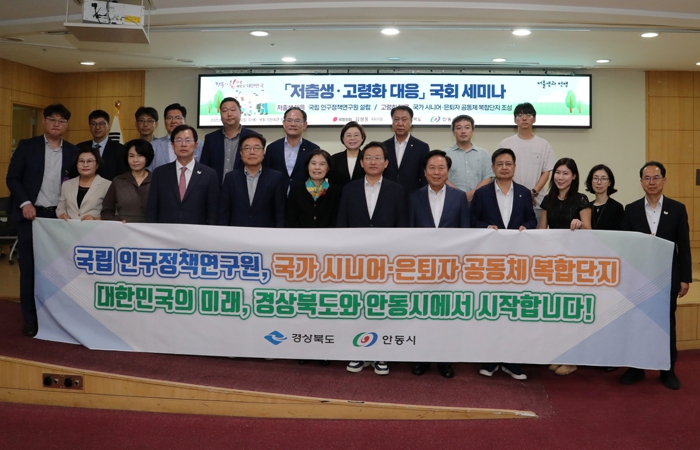 [뉴스노크=김인호 기자] 경상북도와 안동시는 김형동 국회의원실과 함께 9월 19일 국회의원회관 제2소회의실에서 '국립 인구정책 연구원 설립'과 '국가 시니어․은퇴자 복합단지 조성'을 주제로 저출생․고령화 대응 국회 세미나를 개최했다.