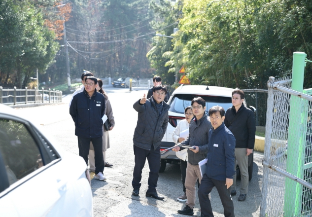 이날 현장 점검은 △화재 등 비상상황 대응을 위한 주정차 문제 △아파트 옹벽 누수 △학생 안전을 위한 통학로 개설 △안전한 보행환경 조성을 위한 도로 포장 △호우 시 빗물·자갈 피해 예방 등 5개 주요 현안을 중심으로 진행됐다.