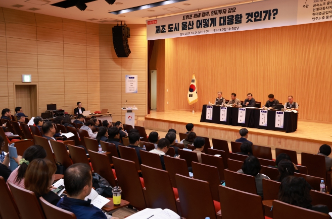 [뉴스노크=김인호 기자] 울산 동구는 10월 24일 오후 2시 동구청 5층 중강당에서 ‘트럼프 정부 관세 압박과 현지 투자 강요, 제조 도시 어떻게 대응할 것인가?’란 주제로 기획토론회를 개최했다.