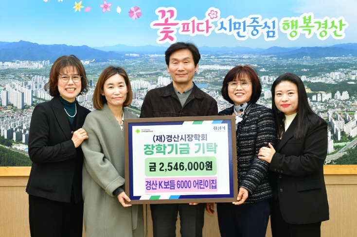 [뉴스노크=김인호 기자] (재)경산시장학회(이사장 조현일)는 18일 경산시 K보듬 6000 4개소 어린이집에서 지역인재 육성을 위한 장학금 2,546,000원을 기탁했다고 밝혔다.