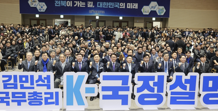 [뉴스노크=김인호 기자] 김민석 국무총리가 19일 전북대학교 JBNU컨벤션센터에서 열린 ‘K-국정설명회’에 참석해 전북을 ‘미래산업의 테스트베드’로 육성하겠다는 정부의 의지를 재확인했다. 국민주권정부 출범 6개월을 맞아 전국을 순회하며 진행되는 이번 행사에는 도민 500여 명이 참석해 정부와 직접 소통하는 시간을 가졌다.