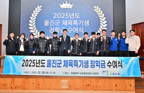 [뉴스노크=김인호 기자] 한국수력원자력(주) 한울원자력본부는 울진군 체육특기생 57명을 선정하여 총 2천8백5십만 원의 장학금 수여식을 개최했으며, 이는 2017년부터 추진 중인 지역 체육인재 육성 사업의 일환이다. 이들은 전국사격대회, 전국고등축구 스플릿 리그 등 각종 대회에서 우수한 성과를 거두었다.