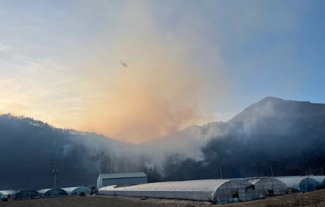17시 현재 진화율은 60%다. 도는 공중과 지상의 진화 역량을 총동원해 인명과 재산 피해 없이 산불을 조기에 진화하는 데 최선을 다할 방침이다.