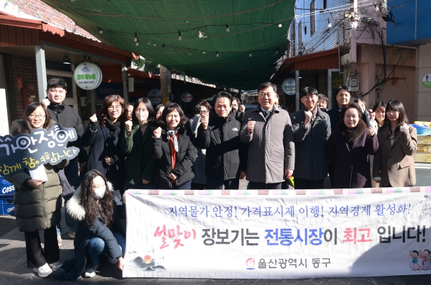 [뉴스노크=김인호 기자] 울산 동구는 민족 대명절 설을 맞이하여 2월 9일 오전 11시 전하시장에서 공무원, 시장 상인회 등 30여 명과 함께 전통시장 이용 캠페인 및 전통시장 장보기 행사를 했다.