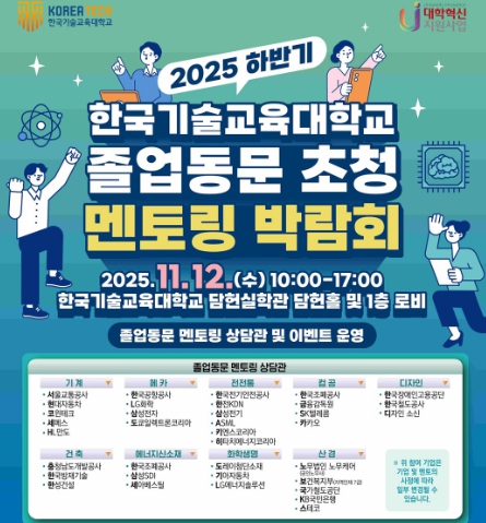 | ▲ 2025 하반기 한국기술교육대학교 졸업동문 초청 멘토링 박람회 포스터 |