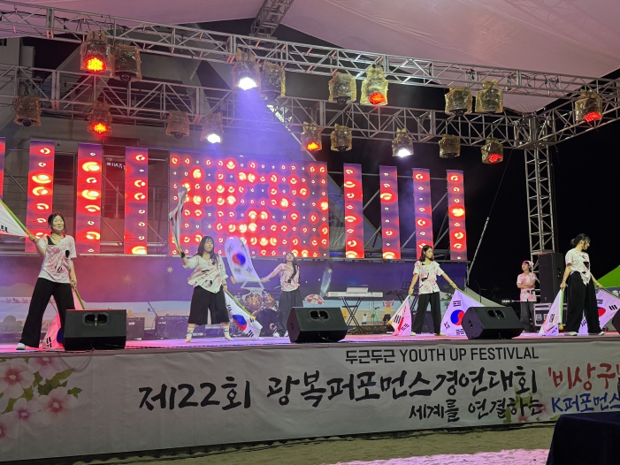 이날 광복80주년 기념 대형태극기 완성하기 등 다양한 체험활동이 진행됐고, 총 15팀의 청소년동아리가 참여해 ‘세계를 연결하는 K퍼포먼스’라는 주제로 ‘광복 퍼포먼스 경연대회’가 열렸다.