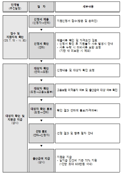 신청 후 센터에서 접수 서류와 자격 요건을 확인 후 대상자 여부를 확정하고 순차적으로 지급한다.
