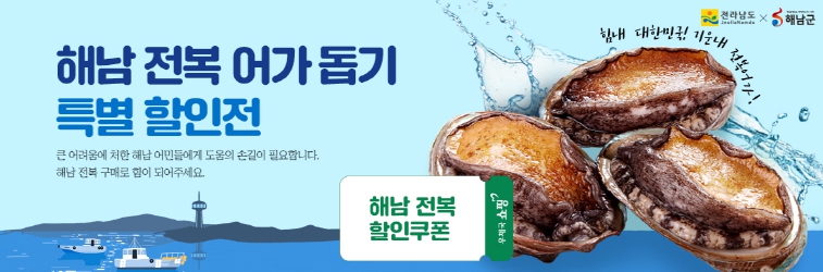 [뉴스노크=김인호 기자] 전남지방우정청은 전라남도·해남군과 함께 해남전복 온라인 상품 판매 촉진을 위해 우체국쇼핑'해남전복 어가 돕기 특별전'을 추진한다고 11일 밝혔다.