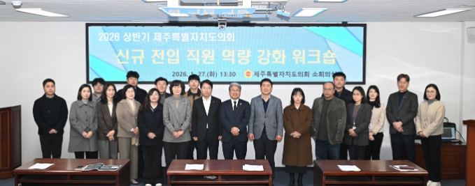 [뉴스노크=김인호 기자] 제주특별자치도의회 의회운영위원회는 지난 1월 27일, 도의회 의사당 소회의실에서 2026년 상반기 정기인사로 전입한 직원 및 실무 역량 배양이 필요한 직원들을 대상으로 ‘역량 강화 워크숍’을 개최했다.