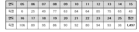 ▲ 최정 연도별 득점 |