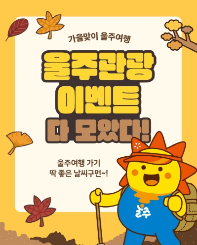 먼저 모바일 스탬프투어 ‘울주단풍명소’ 코스를 운영한다. 간월재, 구량리 은행나무, 자드락 숲 등 8개소 중 6개소에서 스탬프 획득 후 선물을 신청하면 추첨을 거쳐 총 70명에게 2만원 상당의 울주특산품을 제공한다.