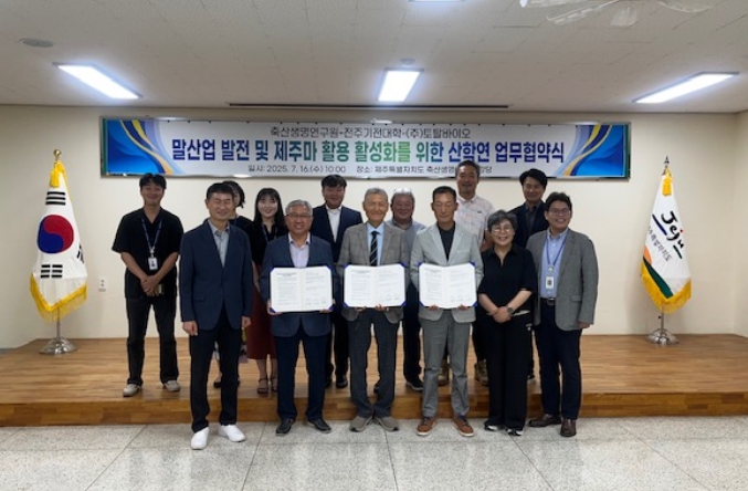 [뉴스노크=김인호 기자] 제주특별자치도 축산생명연구원은 16일 전주기전대학, 주식회사 토탈바이오와 제주마 활용 활성화 및 승용마 산업 발전을 위한 산학연 업무협약을 체결했다.