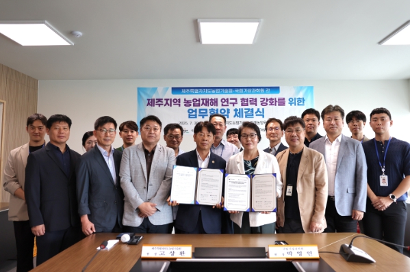 제주도 농업기술원과 국립기상과학원이 30일 오전 11시 농업기술원에서 ‘제주지역 농업재해 관측 및 예보 고도화’를 위한 업무협약을 체결했다.