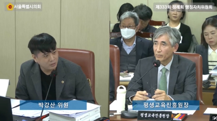 [뉴스노크=김인호 기자] 서울시의회 박강산 의원(더불어민주당·비례대표)은 지난 11일과 12일 서울시평생교육진흥원을 대상으로 한 2025년도 행정자치위원회 행정사무감사에서 청소년과 청년을 대상으로 하는 평생교육 프로그램의 확대 및 보완을 주문했다.
