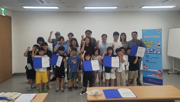 ▲ 온가족사계절스포츠교실 수영 프로그램 수료 모습(남부대) |
