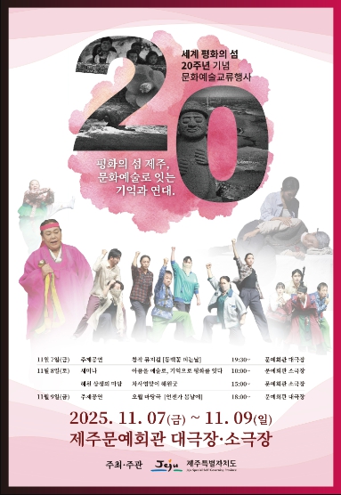 류일순 제주도 문화체육교육국장은“세계 평화의 섬 20주년을 맞아 문화예술을 통해 기억과 치유, 연대의 가치를 나누고 평화의 메시지를 확산하고자 이번 행사를 마련했다”며 “제주4·3과 5·18 등 아픈 역사를 예술로 승화시켜 공감하고, 이를 통해 미래 평화의 토대를 함께 만들어가길 바란다”고 말했다.