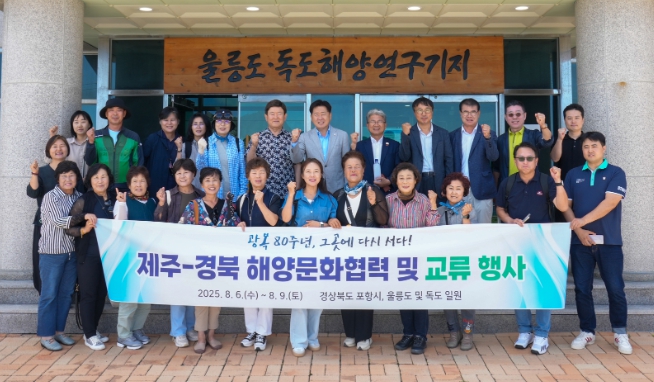 [뉴스노크=김인호 기자] 제주특별자치도는 광복 80주년 기념 ‘제주-경북 해양문화협력 교류행사’ 둘째 날인 7일 울릉도에서 해양과학 협력을 모색하고 제주해녀의 독도 수호 역사를 조명하는 다양한 프로그램을 진행했다.