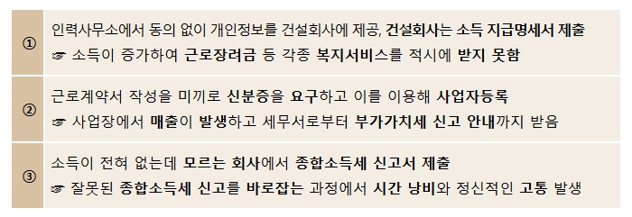 그간 나도 모르는 사이에 근무하지도 않은 회사에서 소득 지급명세서가 제출되는 등 명의도용 피해가 발생하면 생업으로 바쁜 피해자들이 스스로 해결해야 했다.