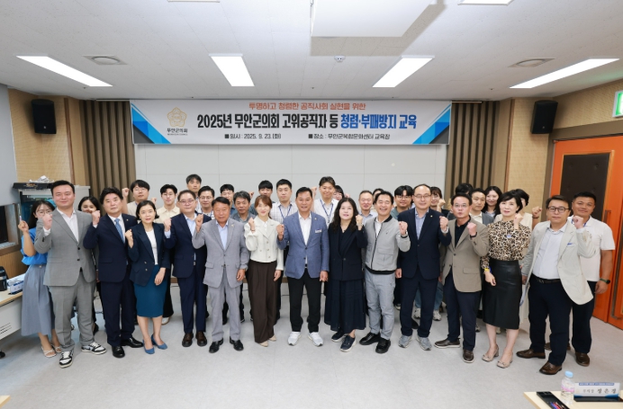 [뉴스노크=김인호 기자] 무안군의회는 9월 23일 무안군복합문화센터 교육장에서 군의원과 의회사무과 공직자를 대상으로 청렴·부패방지 교육, 사회적 장애인식개선 교육, 4대 폭력 예방 교육을 실시했다.