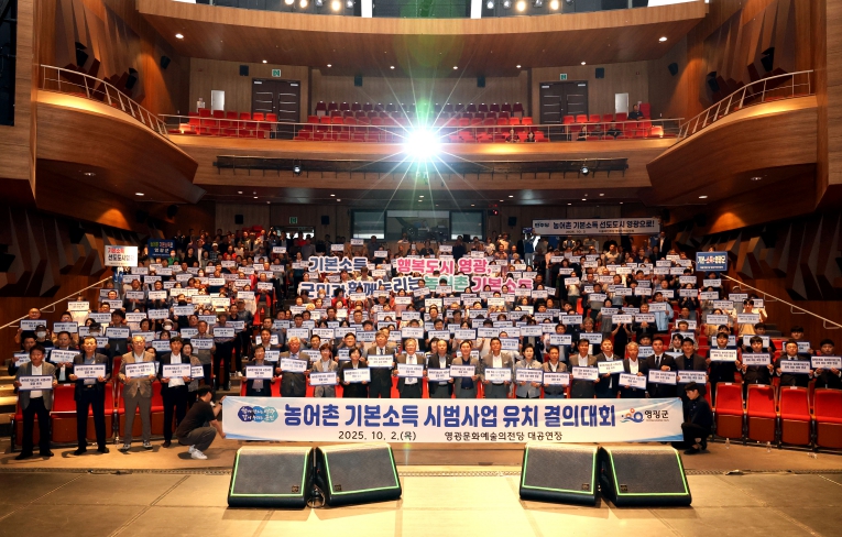 [뉴스노크=김인호 기자] 영광군은 지난 10월 2일 오후 2시, 영광문화예술의전당 대공연장에서 '농어촌기본소득 시범사업 유치 결의대회'를 성황리에 개최했다.