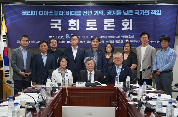 [뉴스노크=김인호 기자] 국회 외교통일위원회 소속 이재강 의원(더불어민주당, 의정부시을)을 비롯해 권칠승·이기헌·이용선·위성곤·정일영·추미애·김용태 의원과 재외동포청, 제주특별자치도가 공동주최한'코리아 디아스포라: 바다를 건넌 기억, 경계를 넘은 국가의 책임'토론회가 9월 2일 국회의원회관 제6간담회의실에서 열렸다.