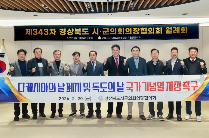 [뉴스노크=김인호 기자] 울릉군의회는 지난 20일 제343차 경상북도 시·군의회의장협의회 월례회를 개최하고 영토 주권과 소멸위기 지역의 정치적 생존권 확보를 위한 핵심 결의안 2건을 만장일치로 채택했다.