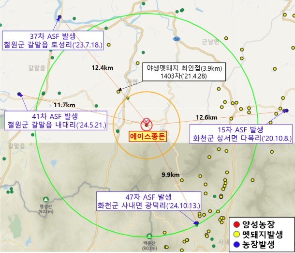 | ▲ 방역대(10km) 아프리카돼지열병 발생 현황 |