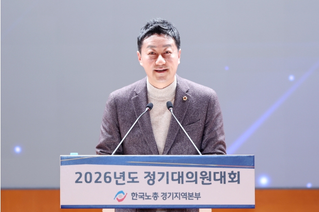 [뉴스노크=김인호 기자] 경기도의회 김진경(더민주·시흥3) 의장은 24일 열린 한국노총 경기지역본부(의장 김연풍) 2026년 정기대의원대회에서 노동자가 중심이 되는 노동의 지속가능성을 강조했다.