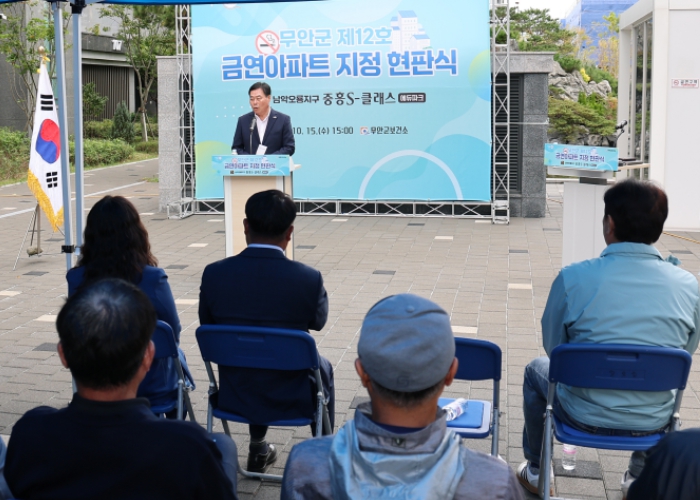 [뉴스노크=김인호 기자] 전남 무안군은 지난 15일 남악오룡지구 중흥 S-클래스 에듀파크 아파트에서 '제12호 금연아파트 지정 현판식'을 개최했다.