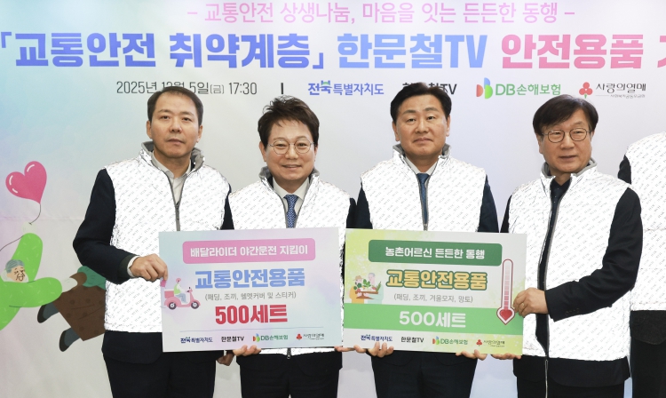 [뉴스노크=김인호 기자] 전북특별자치도가 5일 도청에서 한문철TV와 DB손해보험과 함께 교통안전 취약계층을 위한 안전물품 기탁식을 가졌다.