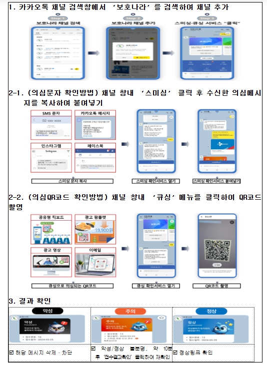 ▲ 스미싱·큐싱 확인서비스 이용방법 |