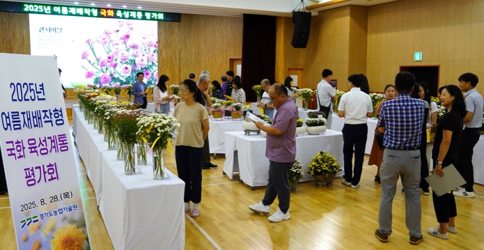 [뉴스노크=김인호 기자] 경기도농업기술원은 28일 농업과학교육관에서 여름철 고온 환경에서도 안정적으로 생육·개화하는 국화 신품종 선발을 위한 평가회를 개최했다.