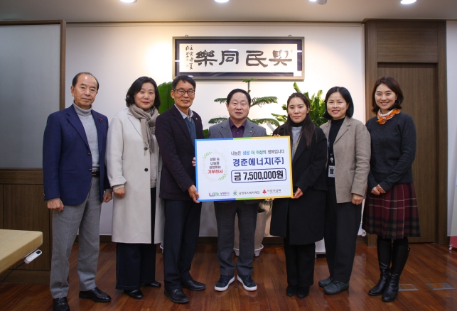 [뉴스노크=김인호 기자] 남양주시는 13일 (주)경춘에너지(대표 전인권)가 지역 내 취약계층 지원을 위해 후원금 750만 원을 동부희망케어센터(센터장 신영미)와 수동면 지역사회보장협의체(위원장 박경숙)에 전달했다.
