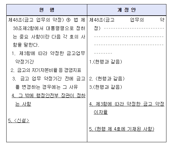 우선, '지방회계법'(제38조제2항) 위임에 따라 중요 공개사항을 정한 제48조 제5항 각 호에 ‘금고 약정 이자율’을 추가한다.