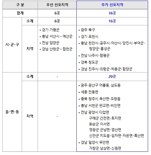 이번에 특별재난지역으로 추가 선포된 지역은 우선 선포지역과 동일하게 지방자치단체에서 부담해야 하는 복구비의 일부를 국비로 추가 지원받게 되어 재정부담을 덜게 된다.