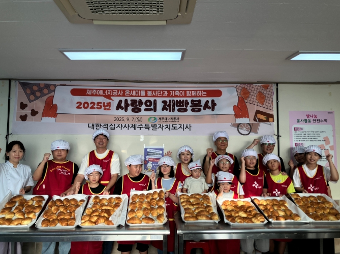 이날 봉사에 참여한 임직원과 가족들은 정성을 담아 200개의 빵을 직접 굽고, 포장해 도내 아동양육시설인 제남아동센터*와 미혼모시설인 애서원, 헬로우아지트에 전달했다.* 제주특별자치도 주도 아동양육시설 지원 강화에 따른 공사 결연시설