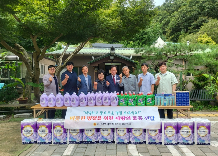 [뉴스노크=김인호 기자] 대전시의회 복지환경위원회가 추석 명절을 앞두고 22일 서구 장안동에 위치한 사회복지시설인 삼보실을 방문해 위문품을 전달하고 시설 관계자들을 격려했다.