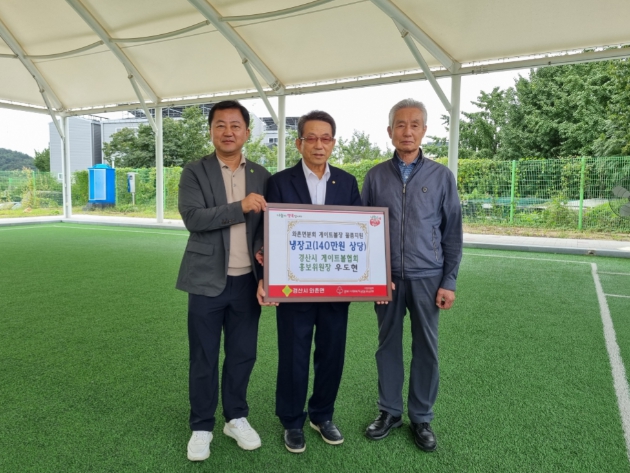 | ▲ 경산시 게이트볼협회 우도현 홍보위원장, 와촌면 분회경로당에 냉장고 기증 |
