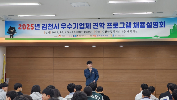 [뉴스노크=김인호 기자] 김천상공회의소는 지난 10월 23일 오후 1시 본 회의소4층 대회의실에서 2025년 김천시 우수기업체 견학프로그램의 일환으로 채용설명회 행사를 개최했다.