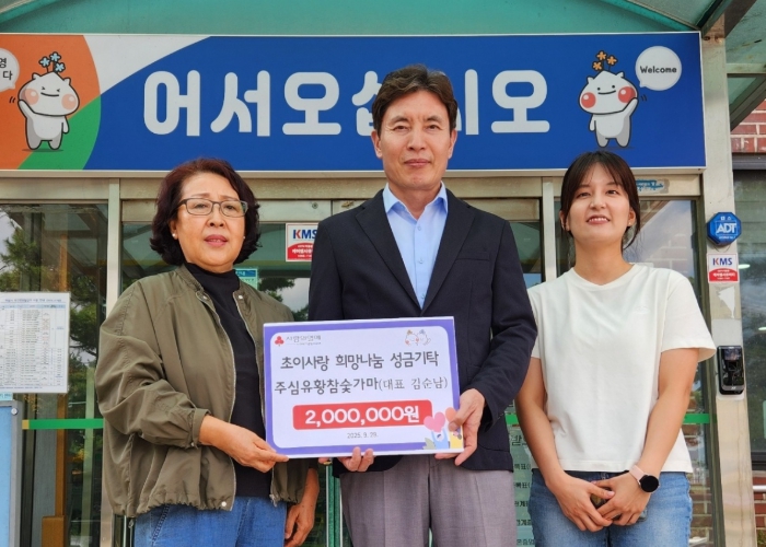 ▲ 초이동 주심유황참숯가마 김순남 대표, 200만원 성금 기탁 |