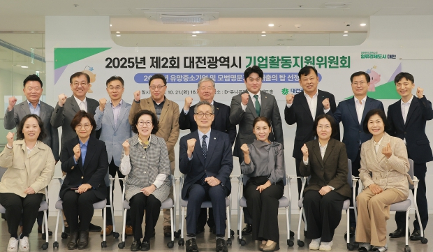 [뉴스노크=김인호 기자] 대전시는 21일 오후, 유성구 도룡동 D-유니콘라운지에서 ‘대전광역시 기업활동지원위원회’를 열고, 유득원 행정부시장 주재로 2025년 유망중소기업, 모범명문기업, 매출의 탑 기업 선정에 대해 심의했다.