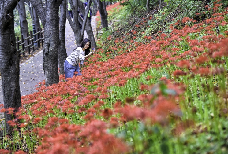개화 후 약 열흘간 이어지는 붉은 물결은 시민들의 일상에 특별한 가을의 감동을 전한다.