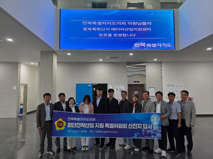 [뉴스노크=김인호 기자] 전북특별자치도의회 전북특별자치도 첨단전략산업 지원 특별위원회(위원장 김동구)는 25일 충북 청주 오송읍·오창읍 일원의 바이오 및 배터리산업 기관·기업을 찾아 벤치마킹했다.