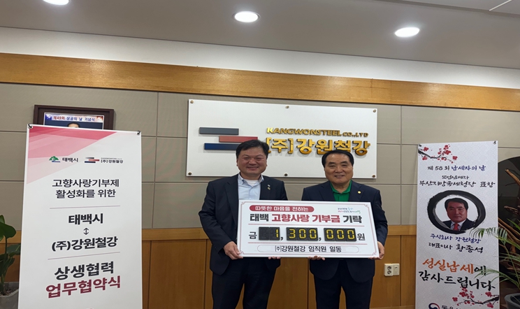 황종석 ㈜강원철강 대표는“임직원들과 함께 고향사랑기부금에 동참할 수 있어 기쁘고, 앞으로도 태백시와 함께 지역 발전을 위해 힘을 보태겠다”고 밝혔다.