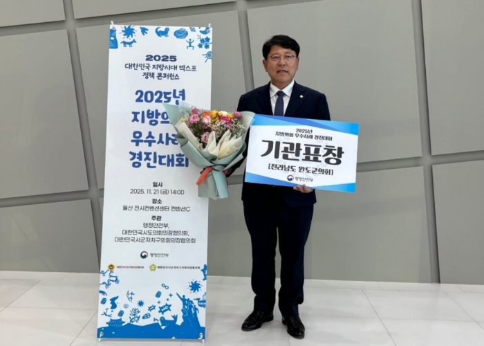 [뉴스노크=김인호 기자] 완도군의회는 행정안전부가 주관하는 지방의회 우수사례 경진대회에서 2024년에 이어 2025년에도 기관표창을 수상하게 됐다고 밝히며, 이는 도서 지역이라는 완도만의 특성과 군민의 생활 현장을 반영한 생활밀착형 의정활동이 전국적으로 인정받은 결과라고 설명했다.