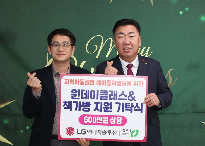 [뉴스노크=김인호 기자] 청주시와 LG에너지솔루션은 16일 지역아동센터를 이용하는 아동 중 예비 중학생과 함께하는 원데이 클래스를 열고 책가방을 후원하는 등 따뜻한 나눔 행사를 개최했다.
