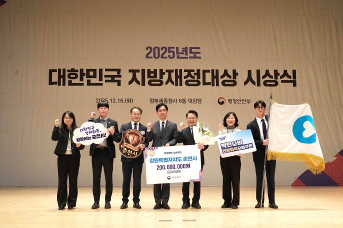 [뉴스노크=김인호 기자] 춘천시가 16일 행정안전부 주관 2025 대한민국 지방재정대상에서 민생회복소비쿠폰 집행 분야 전국 최상위 성과를 인정받아 ‘가’등급에 이름을 올렸다.
