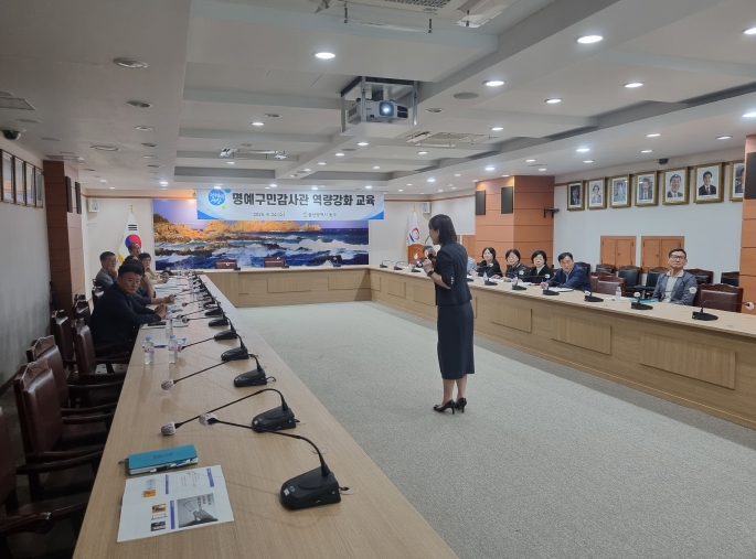 [뉴스노크=김인호 기자] 울산 동구는 9월 24일 오전 10시 동구청 2층 소회의실에서 제12기 명예구민 감사관 역량 강화 교육을 했다.