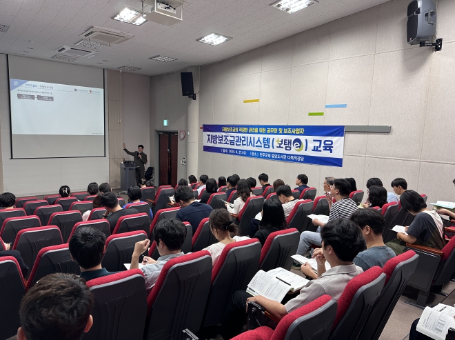 이날 교육은 2024년부터 전국 지자체에 전면 개통된 ‘보탬e’ 시스템 사용자들의 원활한 업무 수행을 위해 한국지역정보개발원의 현장 방문교육으로 실시됐으며, 보조사업 담당공무원 과정과 민간보조사업자 과정으로 나눠 진행됐다.